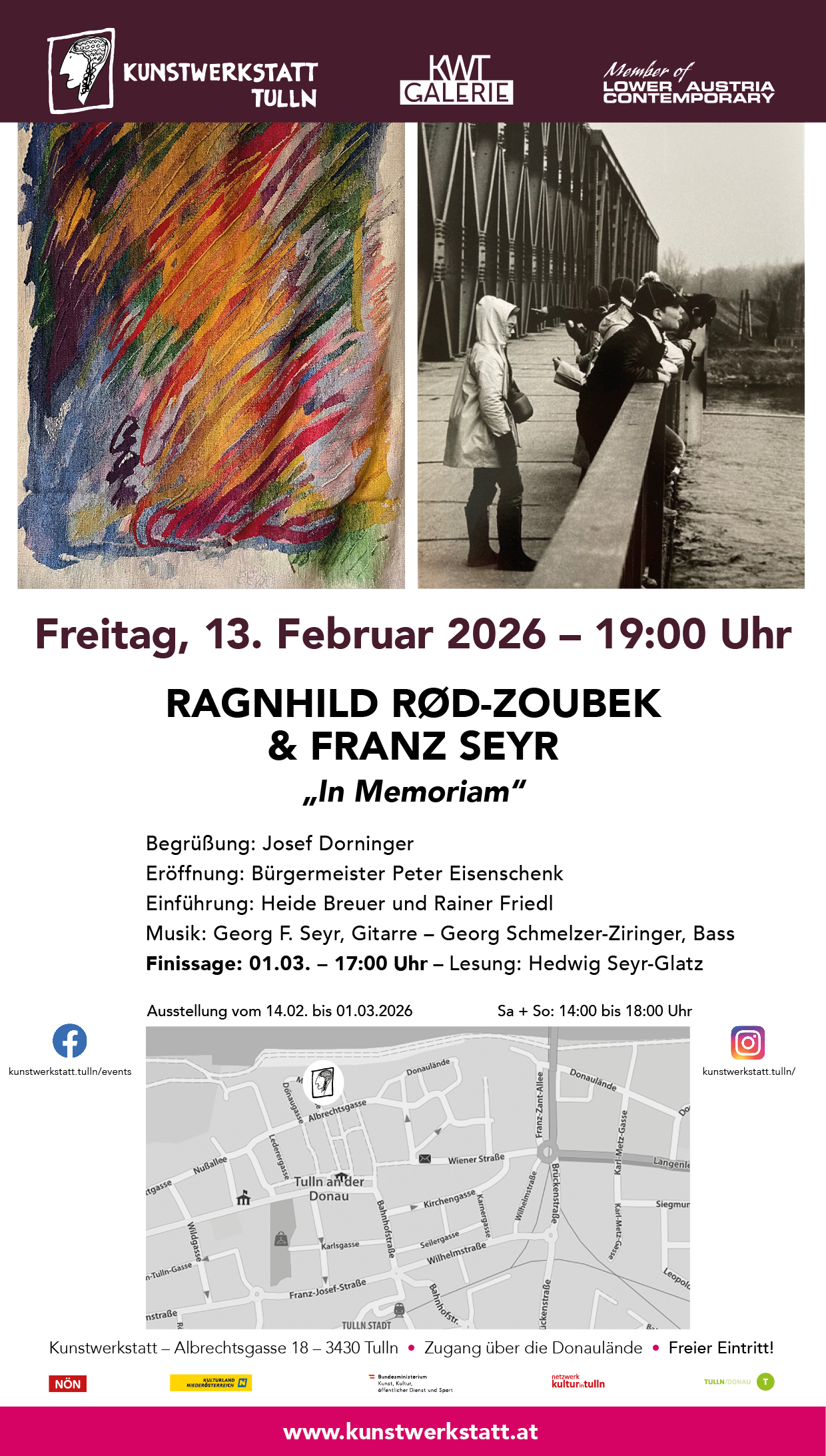 Vernissage: Freitag, 13. Februar 2026 – 19:00 UhrBegrüßung: Josef DorningerEröffnung: Bürgermeister Peter EisenschenkEinführung: Heide Breuer und Rainer FriedlMusik: Georg F.…